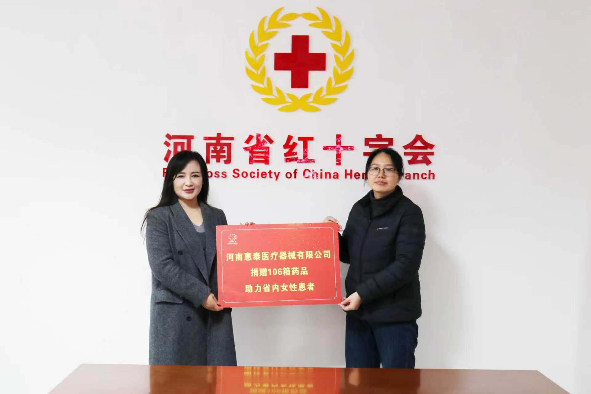 1月26日,河南省红十字基金会与河南惠泰医疗器械有限公司共同举行妇用药品捐赠活动。本次活动由爱心企业河南惠泰医疗器械有限公司向省红十字基金会无偿捐赠女性健康药品106箱,用于支持我省女性健康保障工作,减轻困难群体用药负担,助力河南红十字公益事业发展。省红十字会党组成员、副会长兼秘书长刘瑞勇,惠泰医疗器械有限公司总经理刘琳,副总经理田佩文,省红十字基金会常务副理事长兼秘书长党长晓等出席捐赠活动。